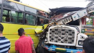 সড়ক দুর্ঘটনায় আহত ২০ জন, চাঞ্চল্যকর ঘটনাটি ঘটেছে কোচবিহার মাথাভাঙ্গা মহকুমায়।মাথাভাঙ্গা কোচবিহার রাজ্য সড়কের পচাগর এলাকায় একটি বেসরকারি বাসের সাথে একটি মাল বোঝাই ট্রাকের মুখোমুখি সংঘর্ষে আহত কুড়ি। জানা গেছে, এদিন একটি বেসরকারি বাস মাথাভাঙ্গা থেকে কোচবিহারের দিকে যাচ্ছিল সেই সময় এবং উল্টো দিক থেকে একটি গম বোঝাই একটি ট্রাক মাথাভাঙ্গার দিকে আসছিল সেই সময় বৃষ্টি পড়ছিলেন। এরপর নিয়ন্ত্রণ হারিয়ে বাস এবং ট্রাকের মুখোমুখি সংঘর্ষ হয় এই সংঘর্ষে কুড়িজন আহত এদের মধ্যে পাঁচজনের অবস্থা আশঙ্কা জনক, তাদের মাথাভাঙ্গা হাসপাতালে ভর্তি করা হয়েছে।। স্থানীয় বাসিন্দার শংকর প্রামানিক জানান এদিন একটি বাস কোচবিহারের দিকে যাচ্ছিল উল্টো দিক থেকে ট্র্যাক আসছিলেন মাথাভাঙ্গার দিকে সেই সময় বৃষ্টি পড়ছিলেন এবং নিয়ন্ত্রণ হারিয়ে বাস ও ট্রাকের মুখোমুখি সংঘর্ষ হয়। এরপর স্থানীয়রা আহতদের মাথাভাঙ্গা মহকুমা হাসপাতালে নিয়ে যাওয়া হয়। ঘটনাস্থলে পৌঁছায় মাথাভাঙ্গা থানার পুলিশ। স্থানীয় বাসিন্দা এবং পুলিশ যৌথভাবে উদ্ধার কার্য চালিয়েছে বলে জানা গেছে। বলা বাহুল্য, কোচবিহার মাথাভাঙা সড়ক ব্যবস্থার উপরে মূলত যে বেসরকারি গাড়িগুলো চলাচল করে, তারা তাদের নিয়ন্ত্রণের উপরে কোন রকম সচেতন নয় এমন অভিযোগ একাধিকবার উঠে এসেছে। ইতিমধ্যেই মাথাভাঙ্গা ট্রাফিক বিভাগের কাছে অভিযোগ জানিয়েছে স্থানীয় বাসিন্দারা। আজকের এই ঘটনা তারই অংশ কিনা তা নিয়ে তদন্ত শুরু হয়েছে। মাথাভাঙ্গা মহকুমা ট্রাফিক বিভাগের তরফে জানানো হয়েছে, যে বাস দুর্ঘটনা গ্রস্ত হয়েছে তার ফিটনেস দেখা হচ্ছে। একই সাথে বাস এর গতি নিয়েও তদন্ত শুরু করছে পুলিশ। স্থানীয় সূত্রে জানানো হয়েছে, রাস্তার পাশে দাঁড়িয়ে থাকা টোটোকে পাশ কাটাতে গিয়ে ট্রাক ও বাসের মুখোমুখি সংঘর্ষটি ঘটে মাথাভাঙ্গা কোচবিহার ১৬ নং রাজ্য সড়কের নবজীবন সংঘ এলাকায়।বাসটি মাথাভাঙ্গা থেকে কোচবিহারের দিকে যাচ্ছিলো আর ট্রাকটি উল্টো দিক থেকে মাথাভাঙ্গার দিকে আসছিলো। আহত হয়েছেন মোট ২০ জন যাদের মধ্যে মাথাভাঙ্গা মহকুমা হাসপাতালে চিকিৎসাধীন ৪ জন, কোচবিহারে রেফার ১ জন এবং বাকিদের প্রাথমিক চিকিৎসার পর ছেড়ে দেওয়া হয়।